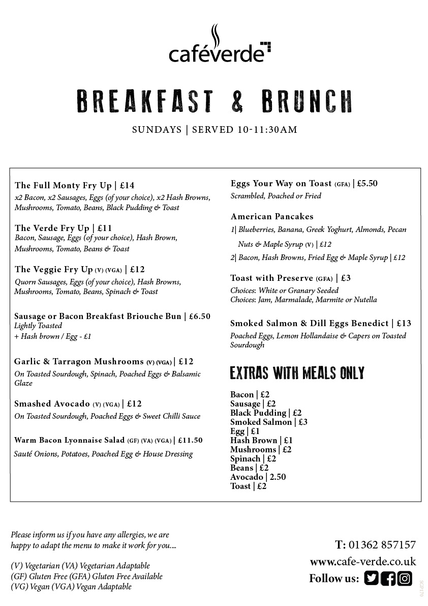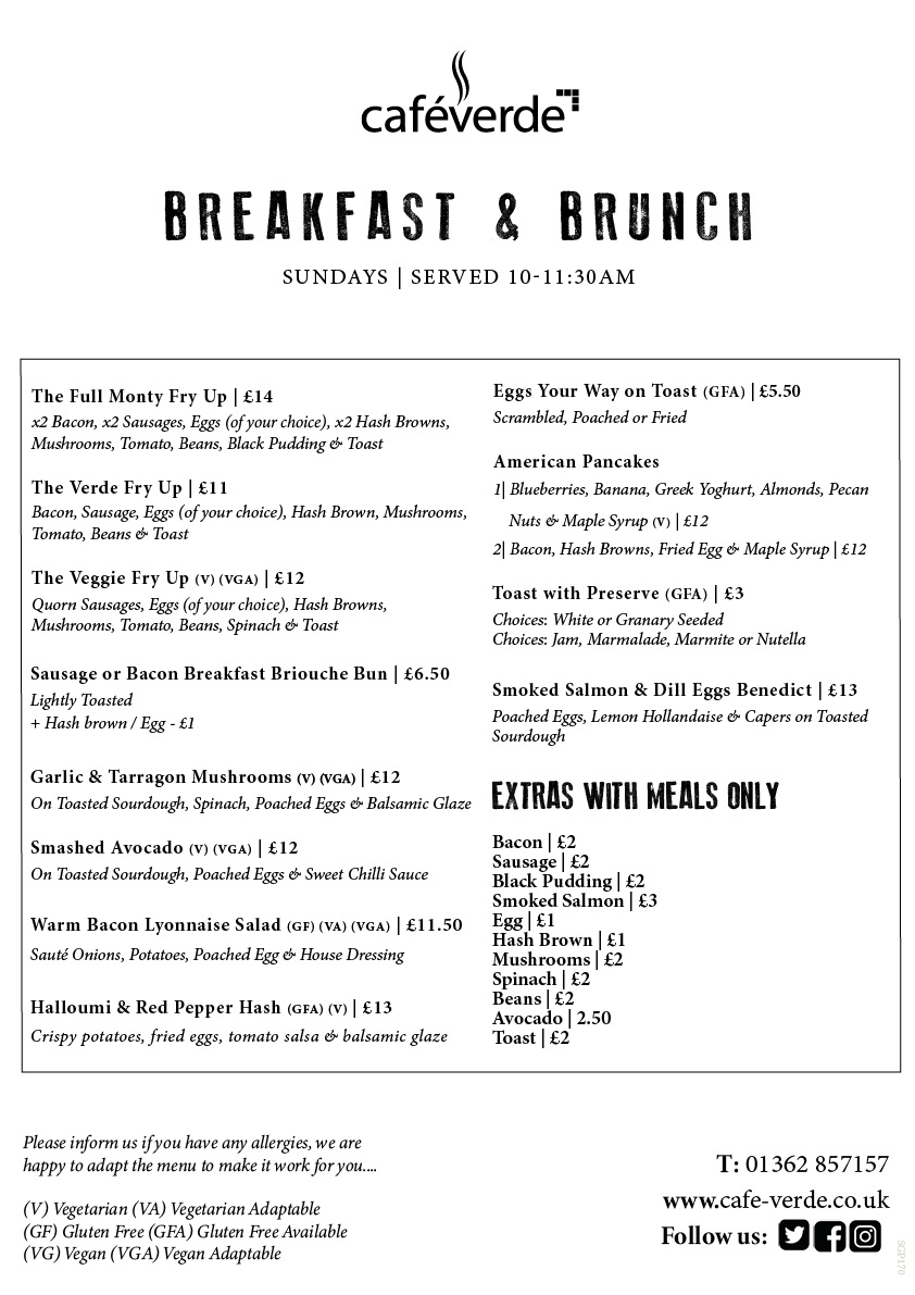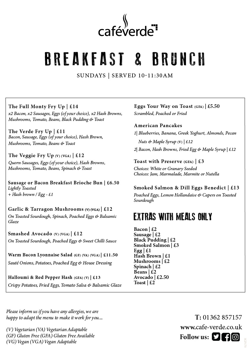 SUNDAY CARVERY SUNDAY CARVERY MENU SERVED FROM 12:30PM – 3PM SUNDAY BREAKFAST & BRUNCH MENU SERVED 10AM – 11:30AM BOOK A TABLE VIA 01362 857157