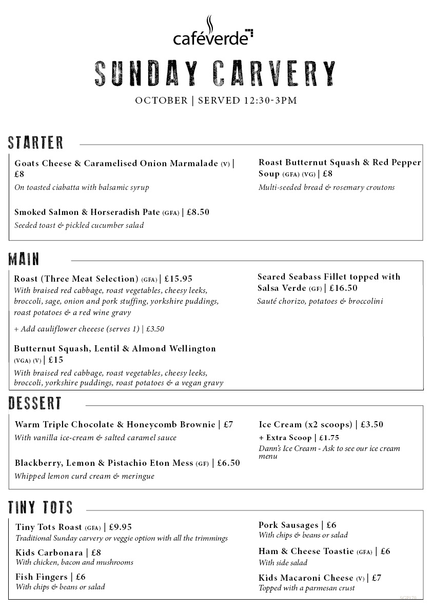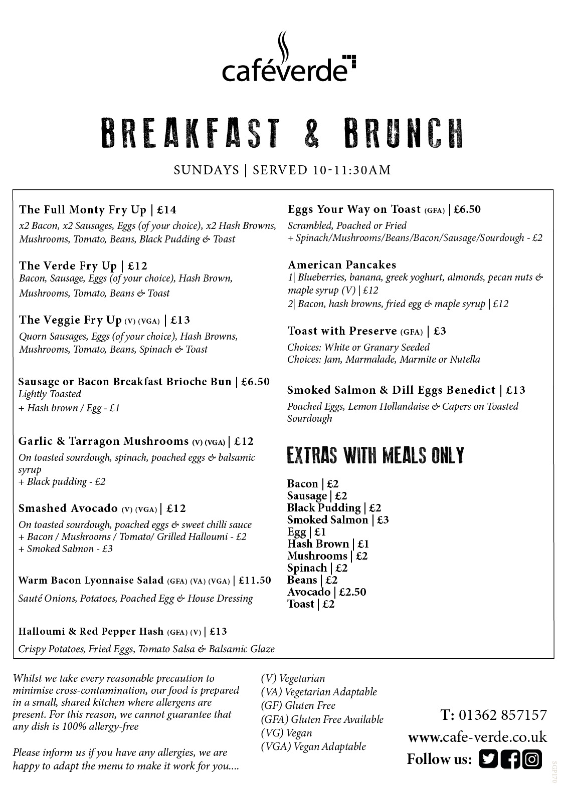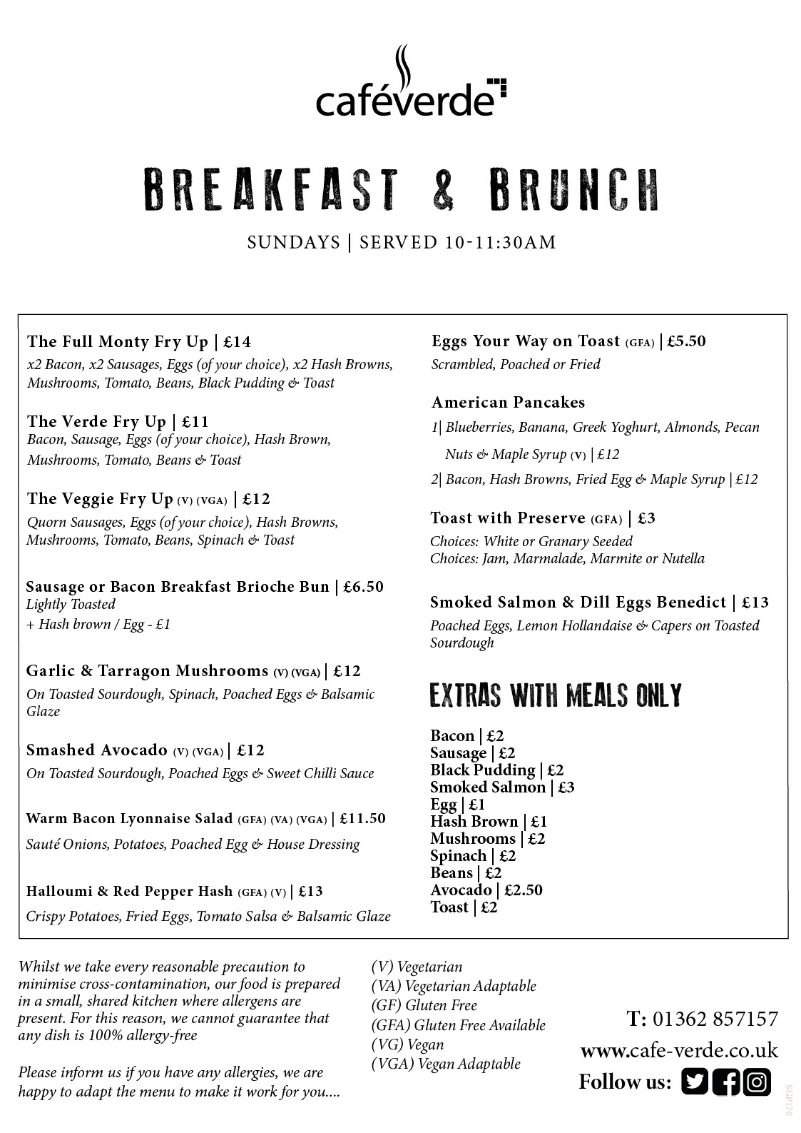 SUNDAY CARVERY SUNDAY CARVERY MENU SERVED FROM 12:30PM – 3PM SUNDAY BREAKFAST & BRUNCH MENU SERVED 10AM – 11:30AM BOOK A TABLE VIA 01362 857157